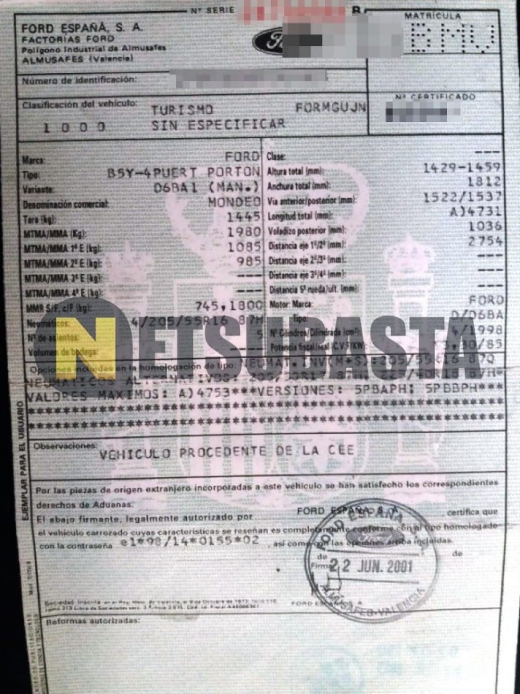 Recuerde que si lo desea, puede imprimir la ficha del vehículo Ford Mondeo 2.0DI 2001 con todas sus características técnicas.