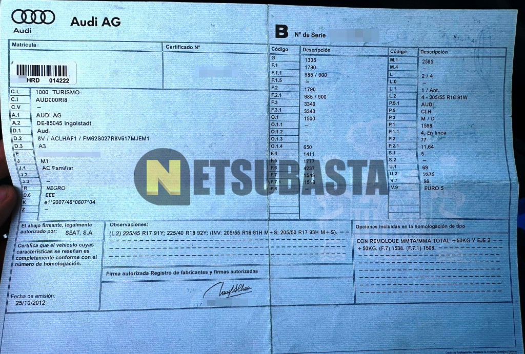Subasta de Audi A3 1.6 TDI 2013 Siniestrados, Marca Audi, Modelo A3 1.6 TDI, Combustible Diésel, Kilometraje 225.000 KM, Fecha 1ª matriculación 05/2013, Matrícula ****HRD, Color Exterior , Color Interior , IVA REBU y Ubicación Islas Baleares.