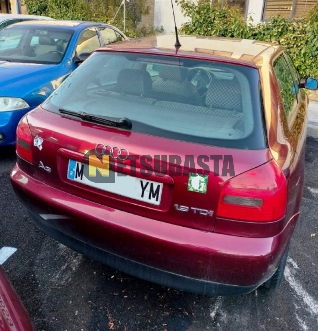 Subasta de Audi A3 1.9 TDI 1999 Siniestrados, Marca Audi, Modelo A3 1.9 TDI, Combustible Diésel, Kilometraje 175.000 KM, Fecha 1ª matriculación 12/1999, Matrícula M****YM, Color Exterior , Color Interior , IVA REBU y Ubicación Madrid.