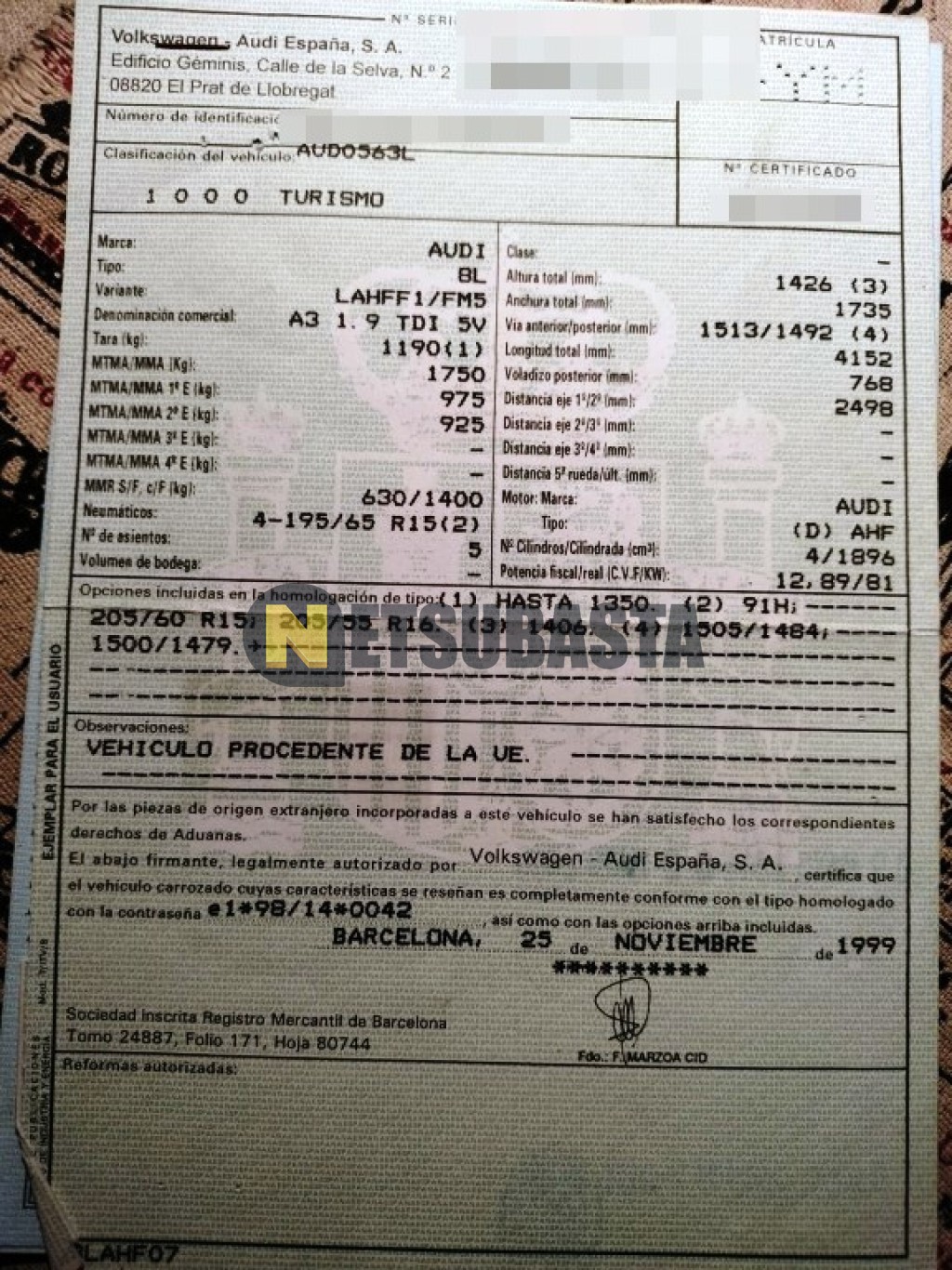 - Modelo:A3 1.9 TDI