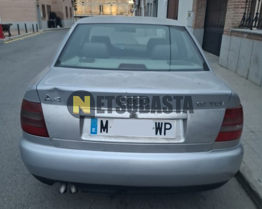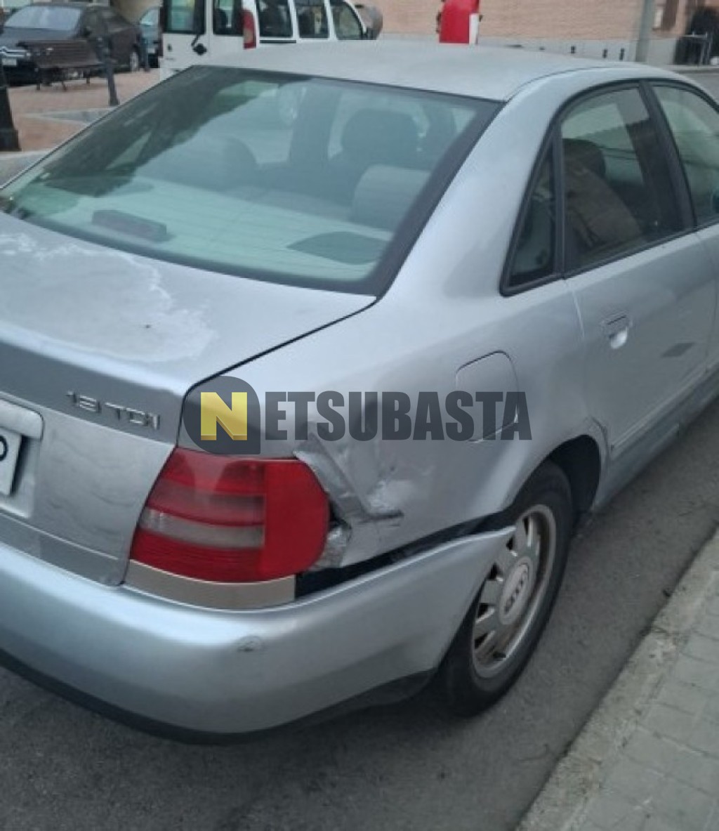 Subasta de Audi A4 1.9 TDI 1998 Siniestrados, Marca Audi, Modelo A4 1.9 TDI, Combustible Diésel, Kilometraje 390.000 KM, Fecha 1ª matriculación 10/1998, Matrícula M****WP, Color Exterior , Color Interior , IVA REBU y Ubicación Toledo.