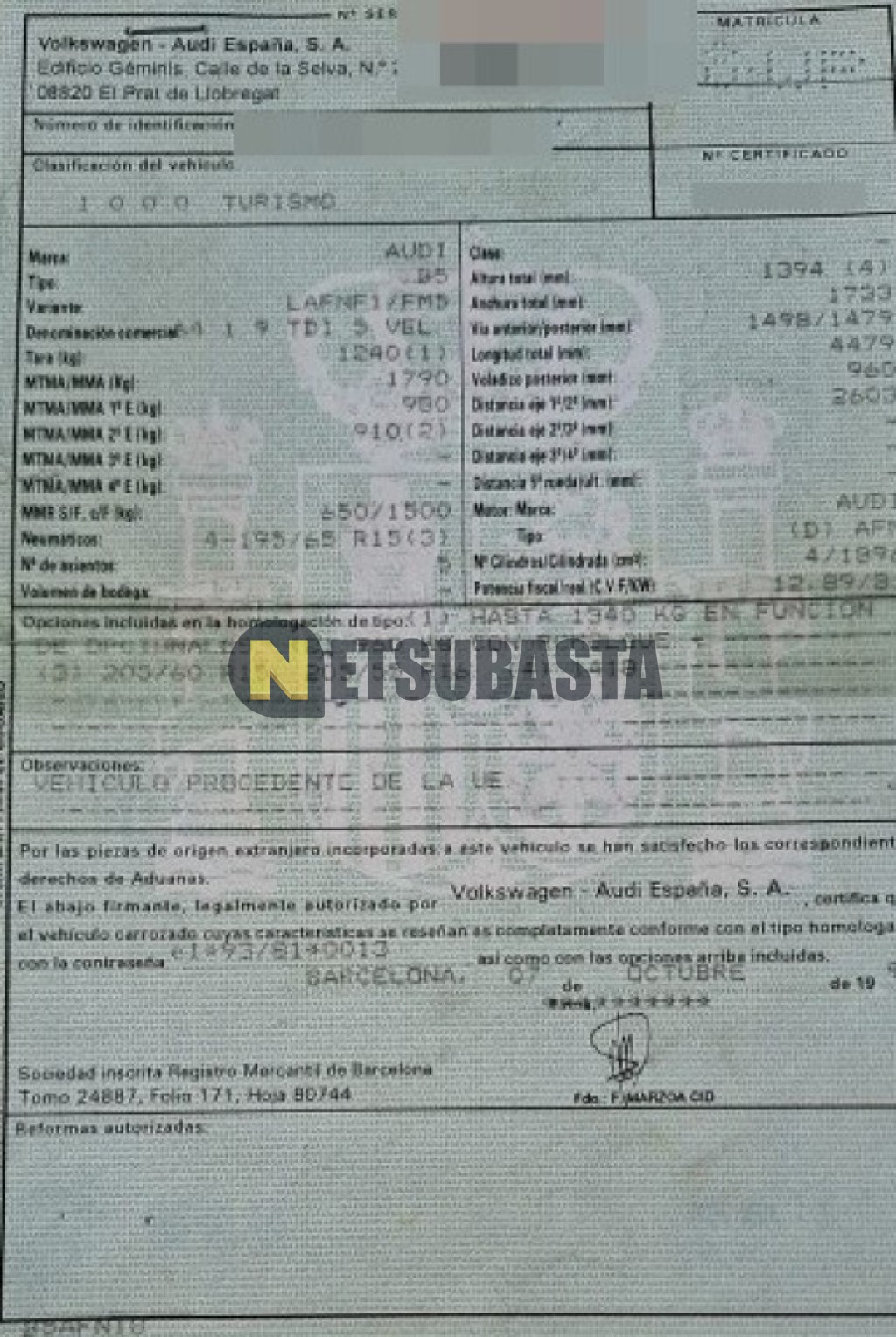 - Modelo:A4 1.9 TDI