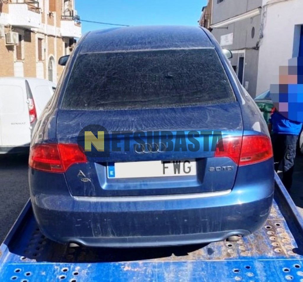 Subasta de Audi A4 2.0 TDI 2007 Averiados, Marca Audi, Modelo A4 2.0 TDI, Combustible Diésel, Kilometraje 250.000 KM, Fecha 1ª matriculación 10/2007, Matrícula ****FWG, Color Exterior , Color Interior , IVA REBU y Ubicación Sevilla.