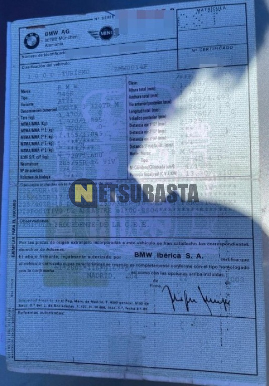 Subasta de Bmw 320td Compact 2004 Averiados, Marca Bmw, Modelo 320td Compact, Combustible Diésel, Kilometraje 335.000 KM, Fecha 1ª matriculación 03/2004, Matrícula ****CST, Color Exterior , Color Interior , IVA REBU y Ubicación Castellón.
