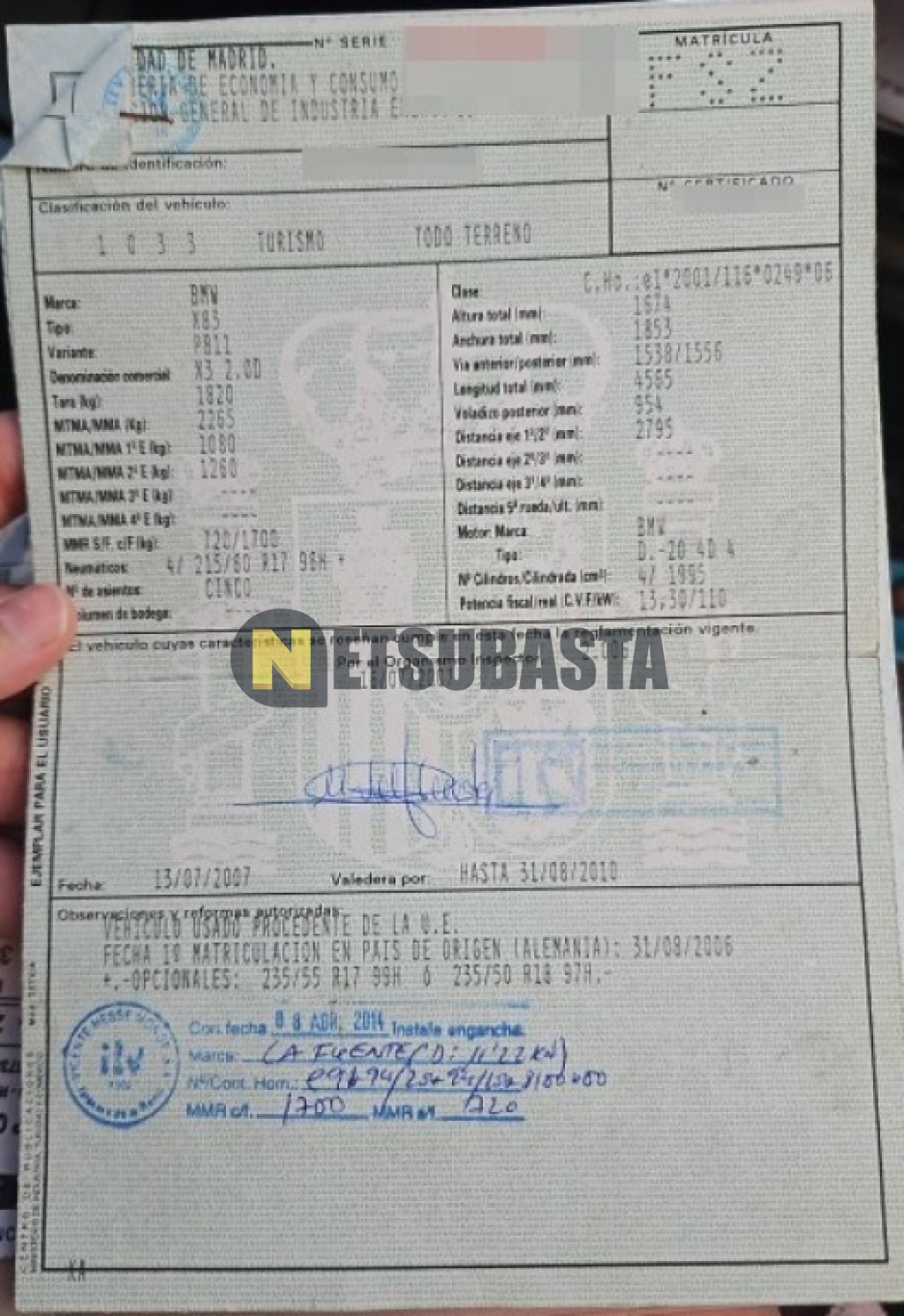 Subasta de Bmw X3 2.0d 2006 Averiados, Marca Bmw, Modelo X3 2.0d, Combustible Diésel, Kilometraje 332.000 KM, Fecha 1ª matriculación 08/2006, Matrícula ****FSZ, Color Exterior , Color Interior , IVA REBU y Ubicación Albacete.