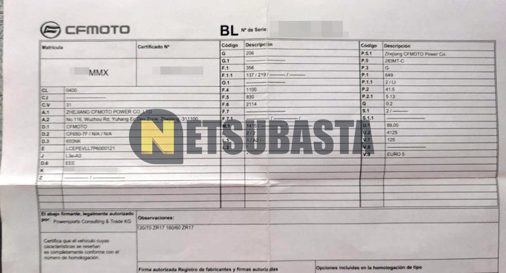 Subasta de CFMoto 650 NK 2024 Siniestrados, Marca CFMoto, Modelo 650 NK, Combustible Gasolina, Kilometraje 10.000 KM, Fecha 1ª matriculación 01/2024, Matrícula ****MMX, Color Exterior , Color Interior , IVA REBU y Ubicación Jaén.