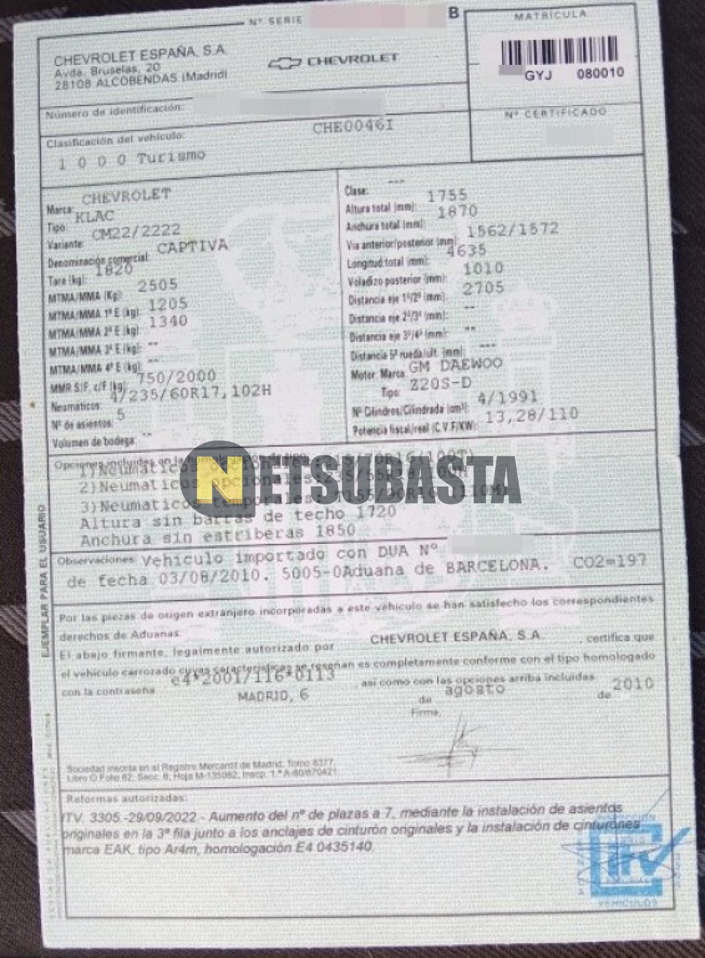 - Modelo:Captiva 2.0 VCDi