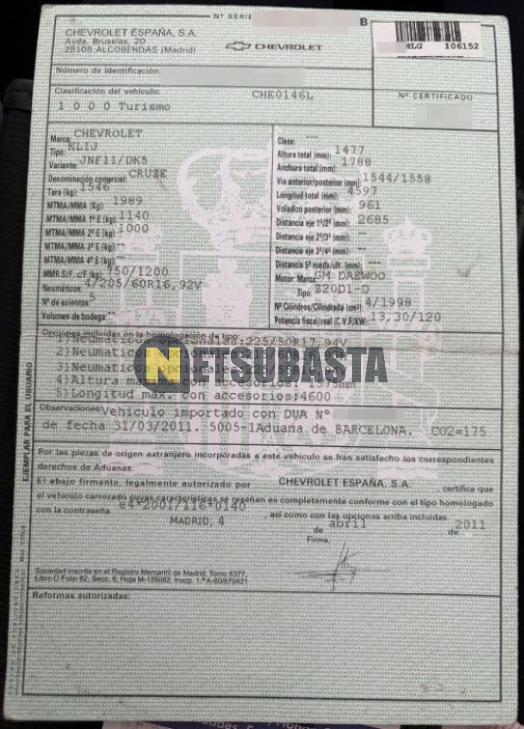- Modelo:Cruze 2.0 VCDi Aut.