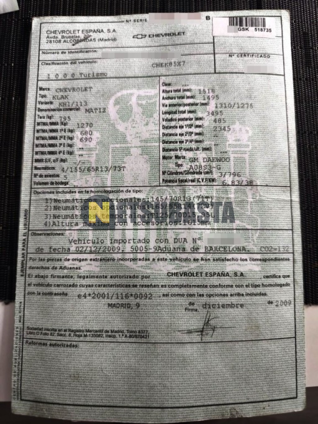 - Modelo:Matiz 0.8 Aut.