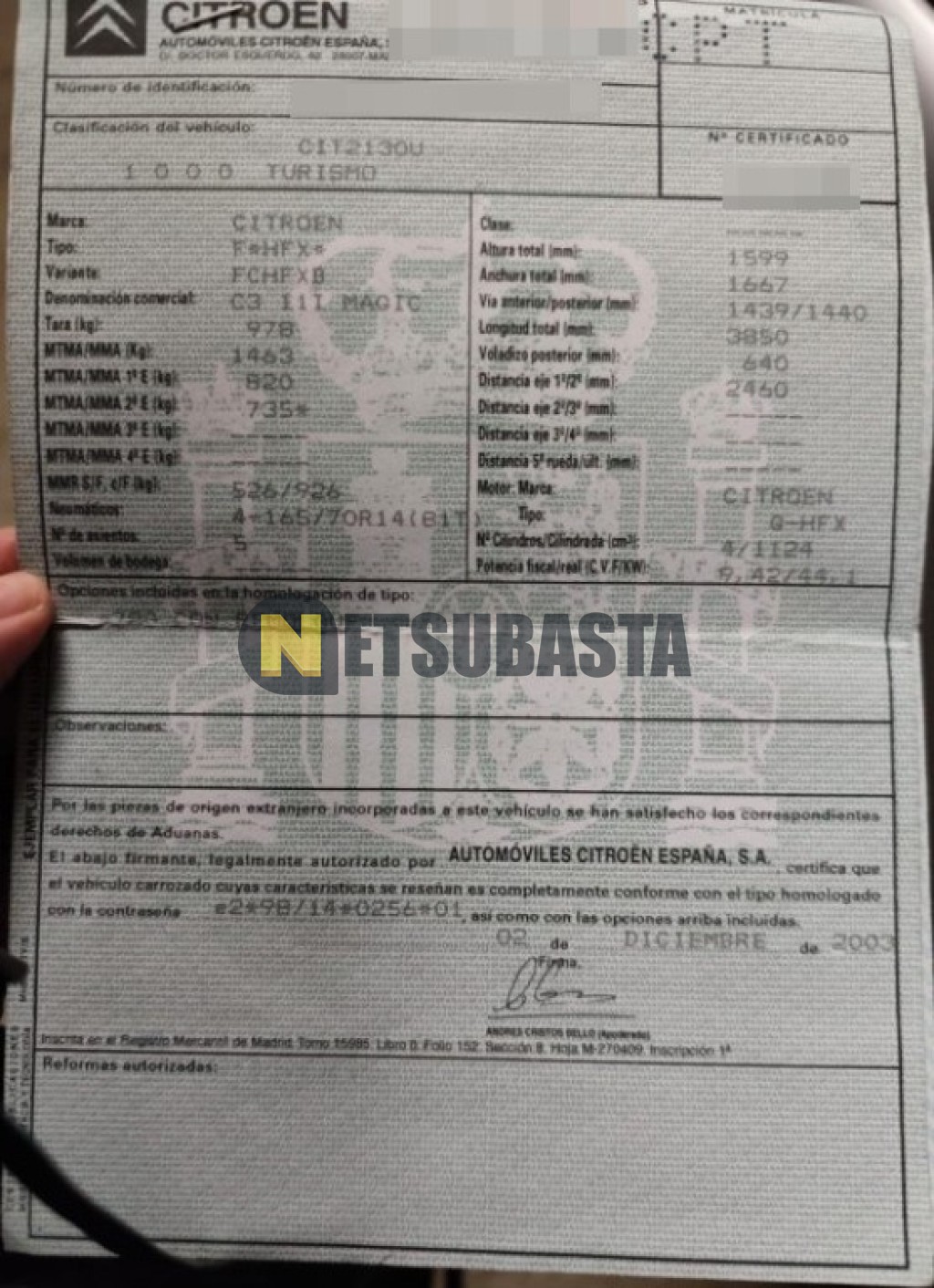 Subasta de Citroën C3 1.1 2003 Averiados, Marca Citroën, Modelo C3 1.1 , Combustible Gasolina, Kilometraje 160.000 KM, Fecha 1ª matriculación 12/2003, Matrícula ****CPT, Color Exterior , Color Interior , IVA REBU y Ubicación Islas Baleares.