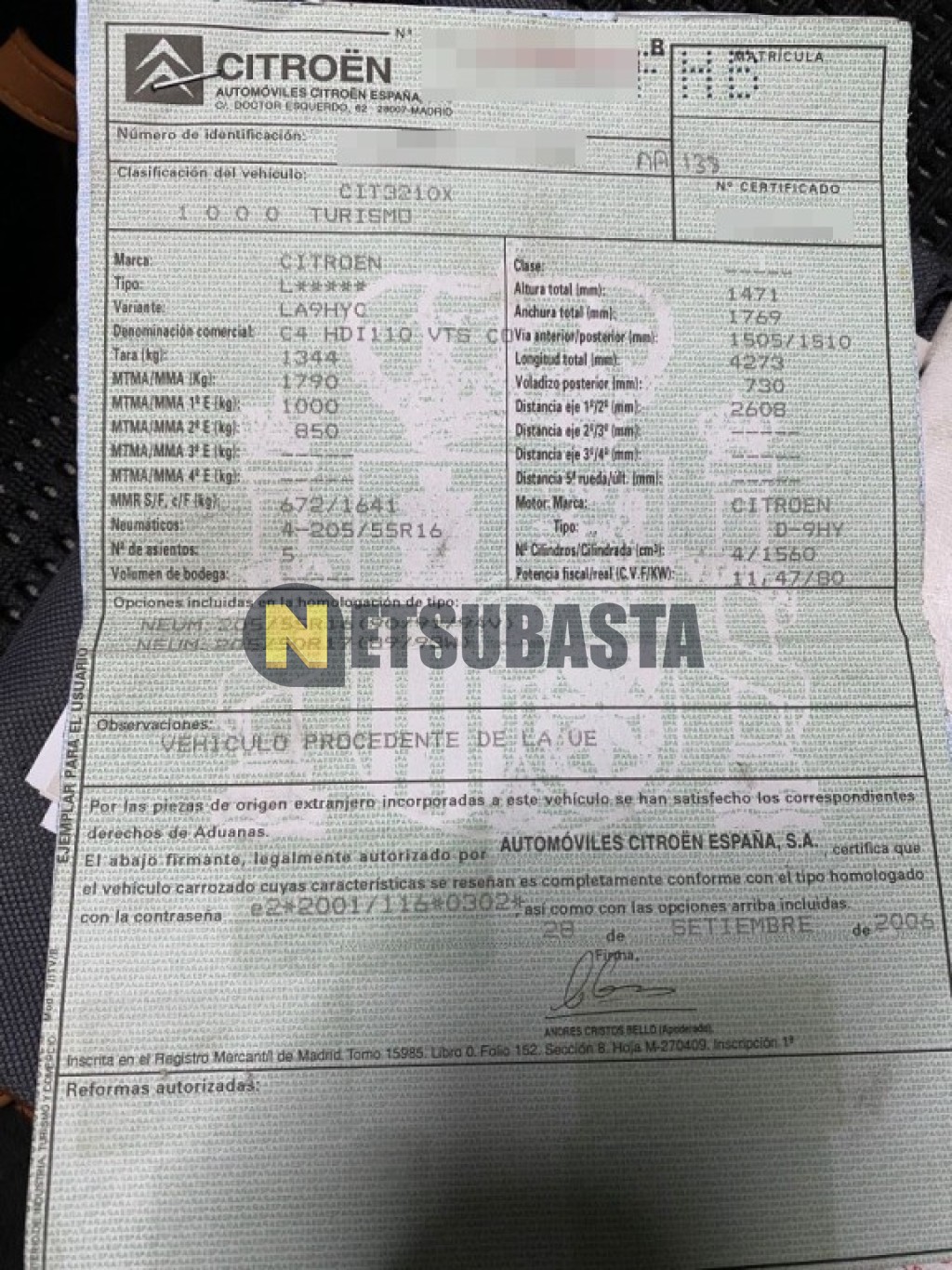 Subasta de Citroën C4 1.6 HDi FAP 2006 Averiados, Marca Citroën, Modelo C4 1.6 HDi FAP, Combustible Diésel, Kilometraje 405.000 KM, Fecha 1ª matriculación 10/2006, Matrícula ****FHB, Color Exterior , Color Interior , IVA REBU y Ubicación Barcelona.