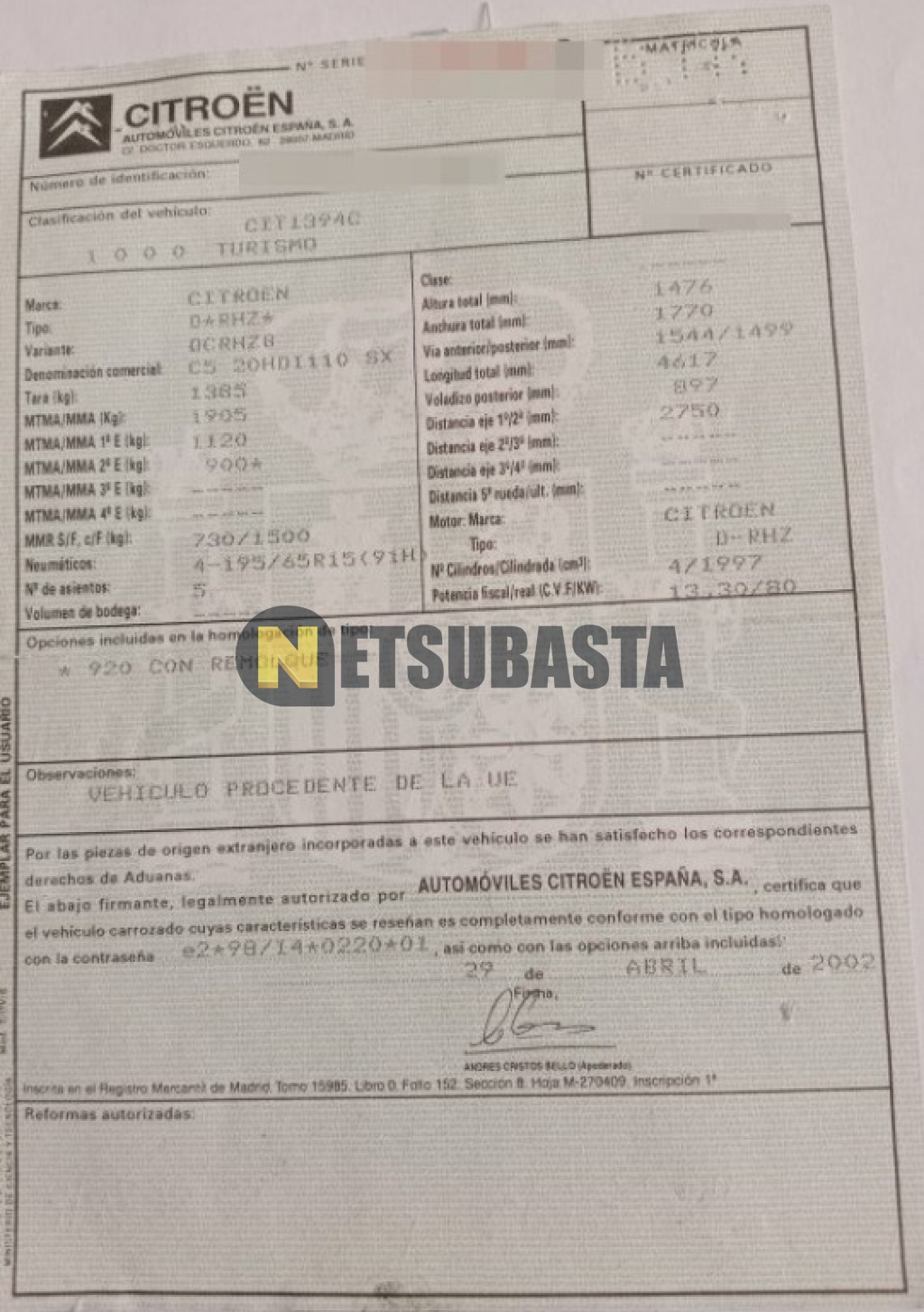- Modelo:C5 2.0 HDi