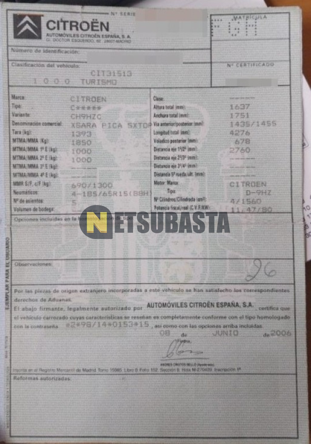 Subasta de Citroën Xsara Picasso 1.6 HDi 2006 Siniestrados, Marca Citroën, Modelo Xsara Picasso 1.6 HDi, Combustible Diésel, Kilometraje 160.000 KM, Fecha 1ª matriculación 10/2006, Matrícula ****FGH, Color Exterior , Color Interior , IVA REBU y Ubicación Tarragona.