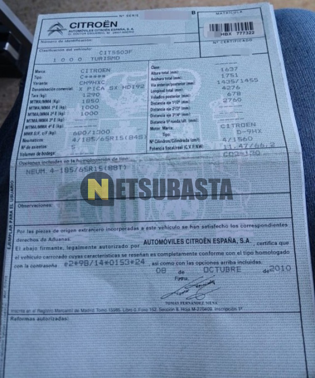Subasta de Citroën Xsara Picasso 1.6 HDi 2011 Averiados, Marca Citroën, Modelo Xsara Picasso 1.6 HDi, Combustible Diésel, Kilometraje 180.000 KM, Fecha 1ª matriculación 02/2011, Matrícula ****HBX, Color Exterior , Color Interior , IVA REBU y Ubicación Valencia.