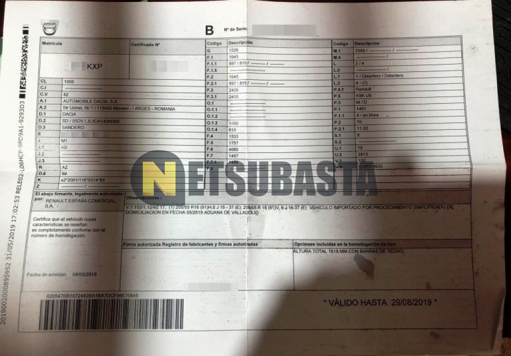Subasta de Dacia Sandero Steepway 1.5 dCi 2019 Averiados, Marca Dacia, Modelo Sandero Steepway 1.5 dCi, Combustible Diésel, Kilometraje 35.000 KM, Fecha 1ª matriculación 05/2019, Matrícula ****KXP, Color Exterior , Color Interior , IVA REBU y Ubicación Vizcaya.