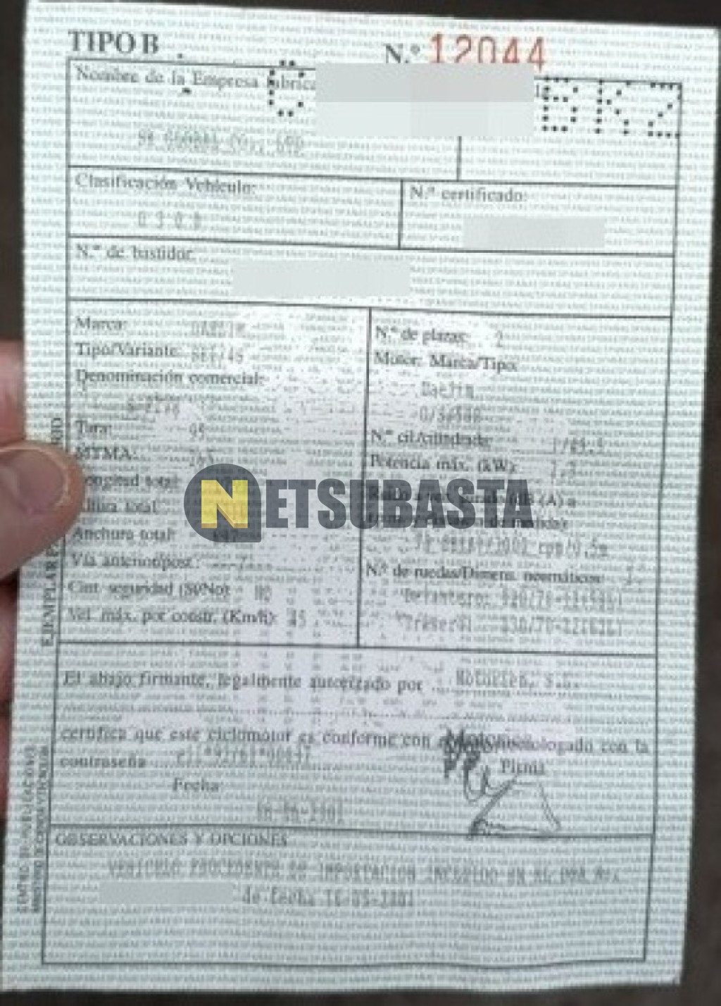 - Ficha técnica:Si
