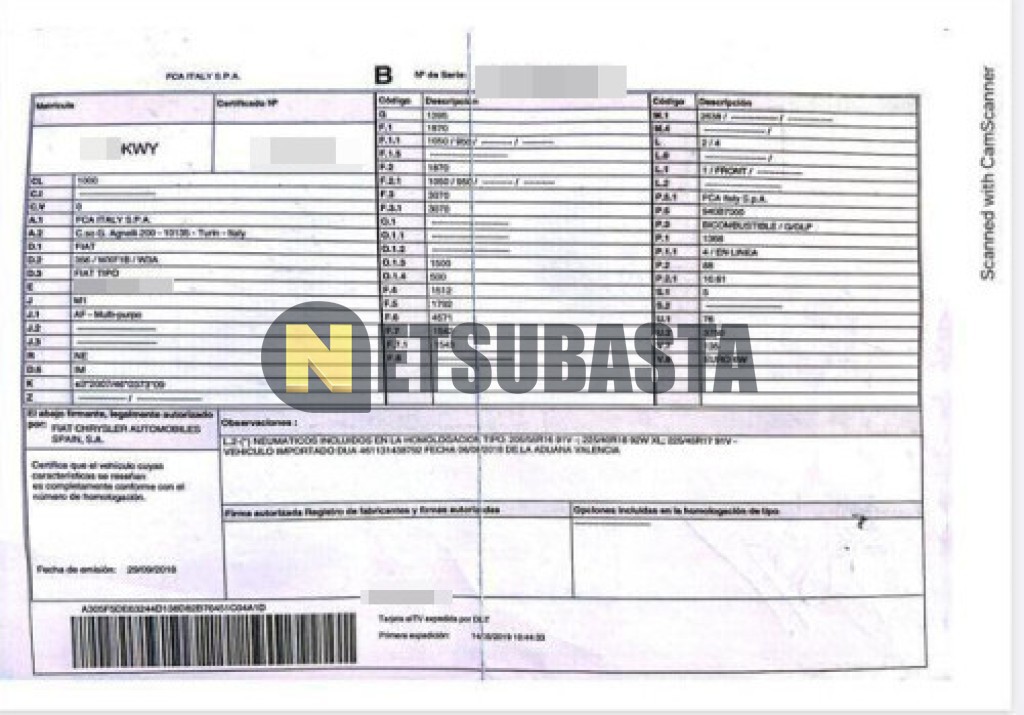 Subasta de Fiat Tipo SW 1.4 GLP 2019 Averiados, Marca Fiat, Modelo Tipo SW 1.4 GLP, Combustible Gasolina / GLP, Kilometraje 293.000 KM, Fecha 1ª matriculación 05/2019, Matrícula ****KWY, Color Exterior , Color Interior , IVA REBU y Ubicación Barcelona.