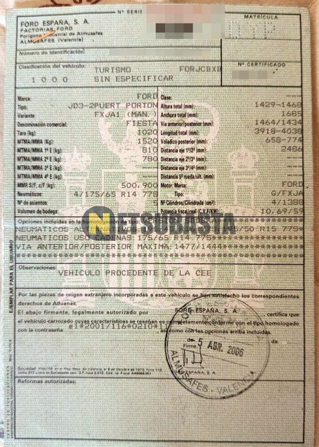 - Fecha primera matriculación:04/2006