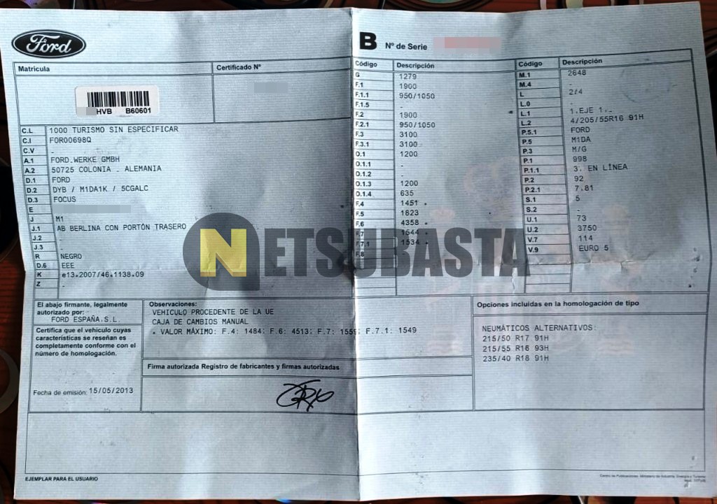 Subasta de Ford Focus 1.0 EcoBoost 2013 Siniestrados, Marca Ford, Modelo Focus 1.0 EcoBoost, Combustible Gasolina, Kilometraje 230.000 KM, Fecha 1ª matriculación 12/2013, Matrícula ****HVB, Color Exterior , Color Interior , IVA REBU y Ubicación Cantabria.