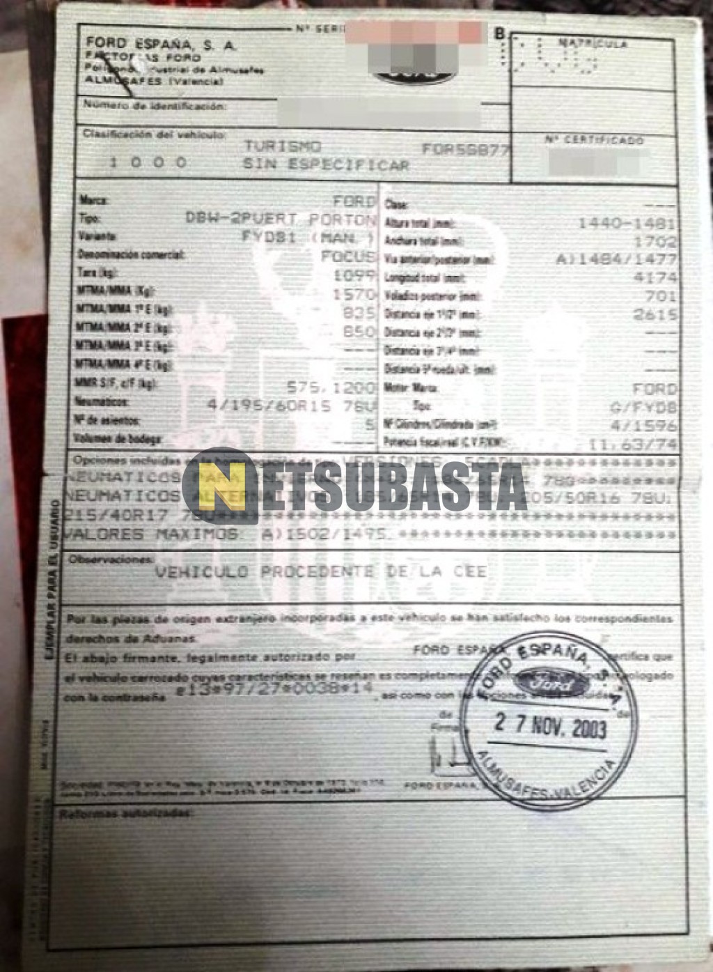 Subasta de Ford Focus 1.6 2004 Siniestrados, Marca Ford, Modelo Focus 1.6 , Combustible Gasolina, Kilometraje 100.000 KM, Fecha 1ª matriculación 04/2004, Matrícula ****CVG, Color Exterior , Color Interior , IVA REBU y Ubicación Madrid.