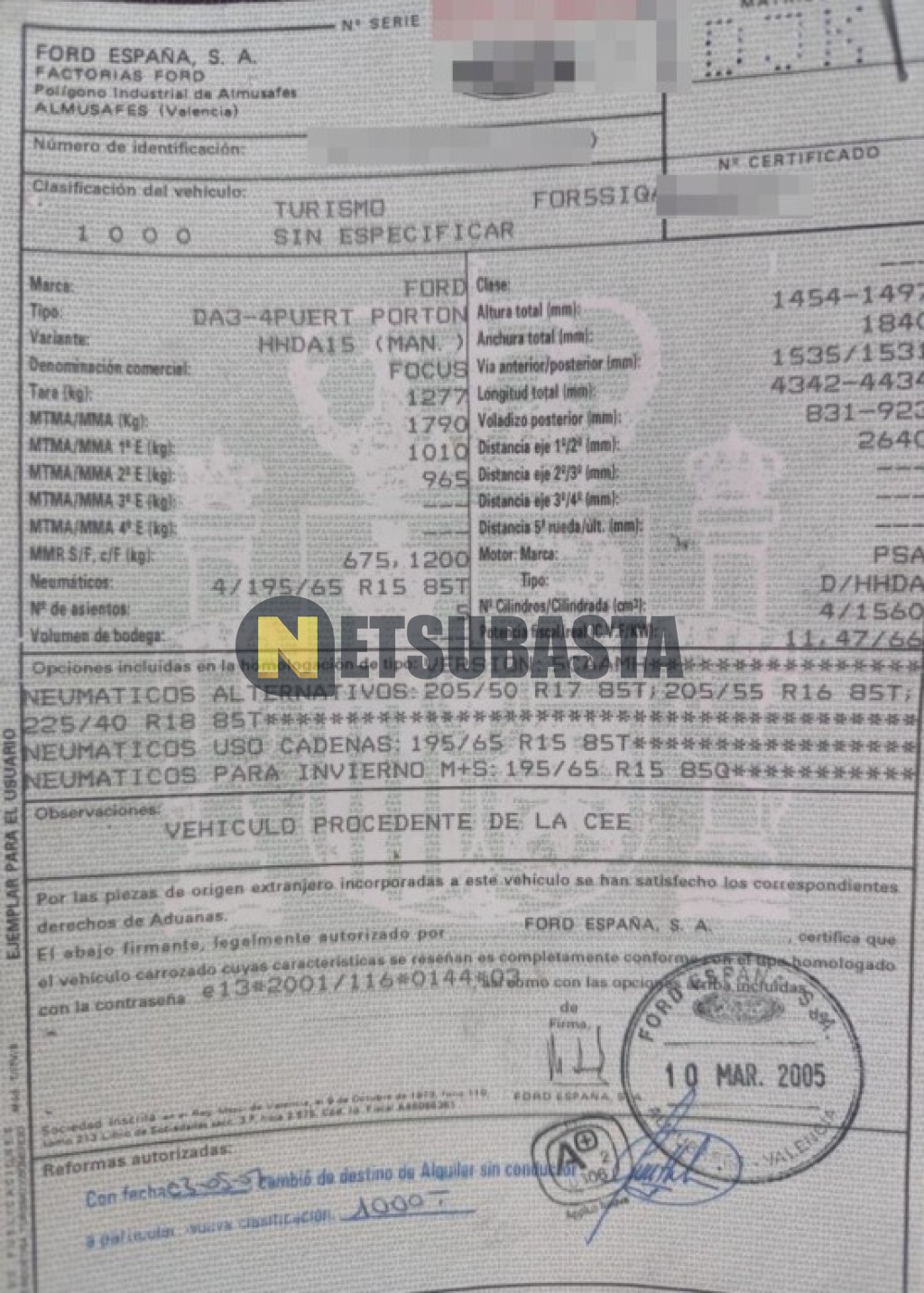 Subasta de Ford Focus 1.6 TDCi 2005 Averiados, Marca Ford, Modelo Focus 1.6 TDCi, Combustible Diésel, Kilometraje 300.000 KM, Fecha 1ª matriculación 04/2005, Matrícula ****DJK, Color Exterior , Color Interior , IVA REBU y Ubicación Alicante.
