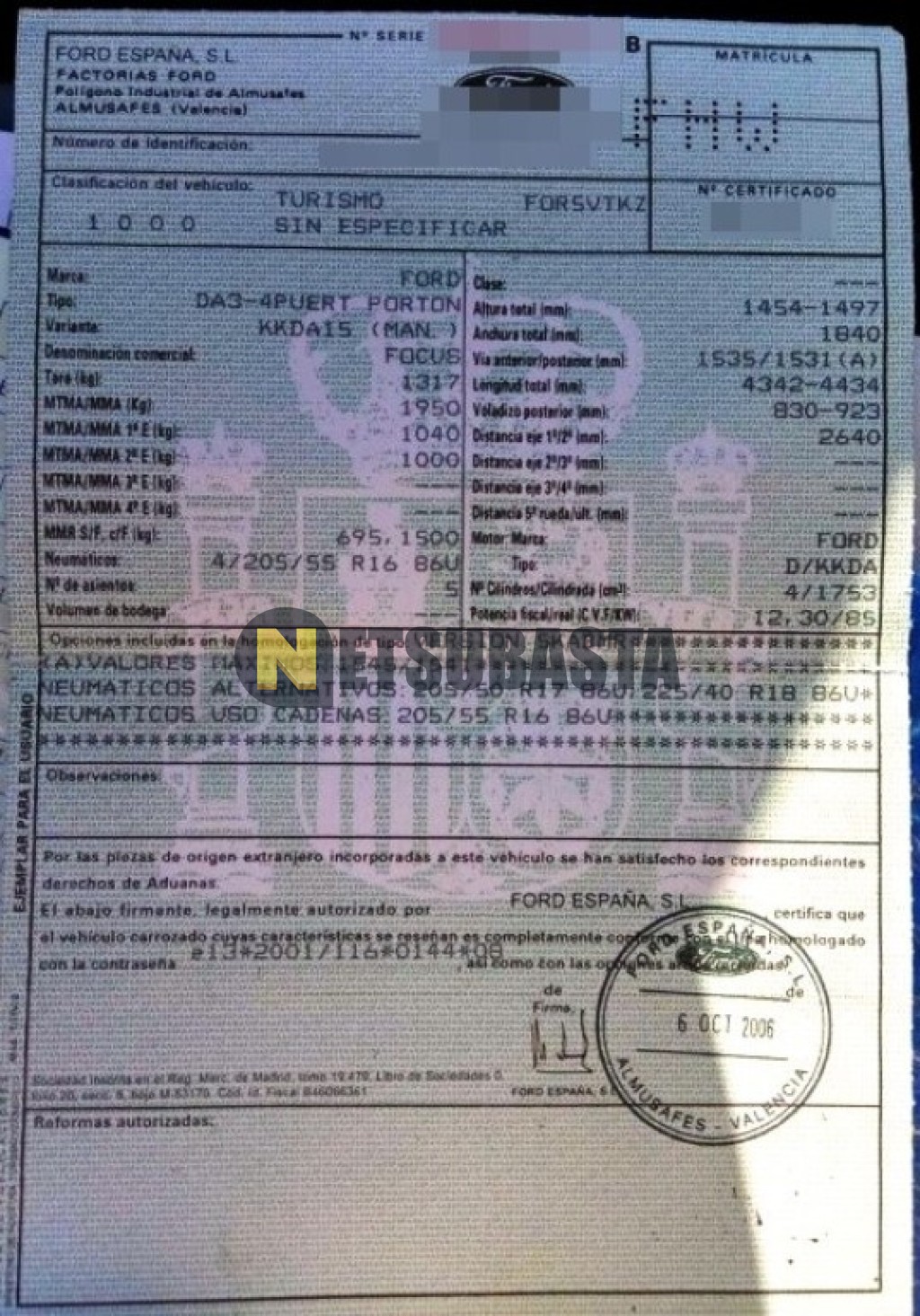 Subasta de Ford Focus 1.8 TDCi 2006 Siniestrados, Marca Ford, Modelo Focus 1.8 TDCi, Combustible Diésel, Kilometraje 195.000 KM, Fecha 1ª matriculación 11/2006, Matrícula ****FHW, Color Exterior , Color Interior , IVA REBU y Ubicación Barcelona.