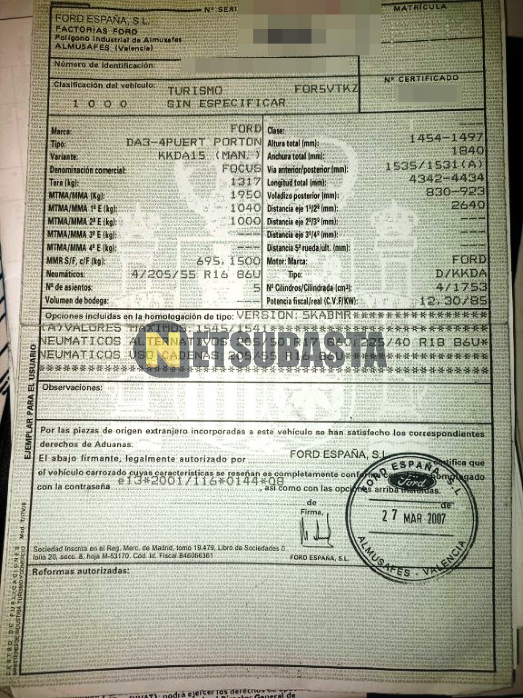 Subasta de Ford Focus 1.8 TDCi 2007 Siniestrados, Marca Ford, Modelo Focus 1.8 TDCi, Combustible Diésel, Kilometraje 200.000 KM, Fecha 1ª matriculación 07/2007, Matrícula ****FTP, Color Exterior , Color Interior , IVA REBU y Ubicación Toledo.
