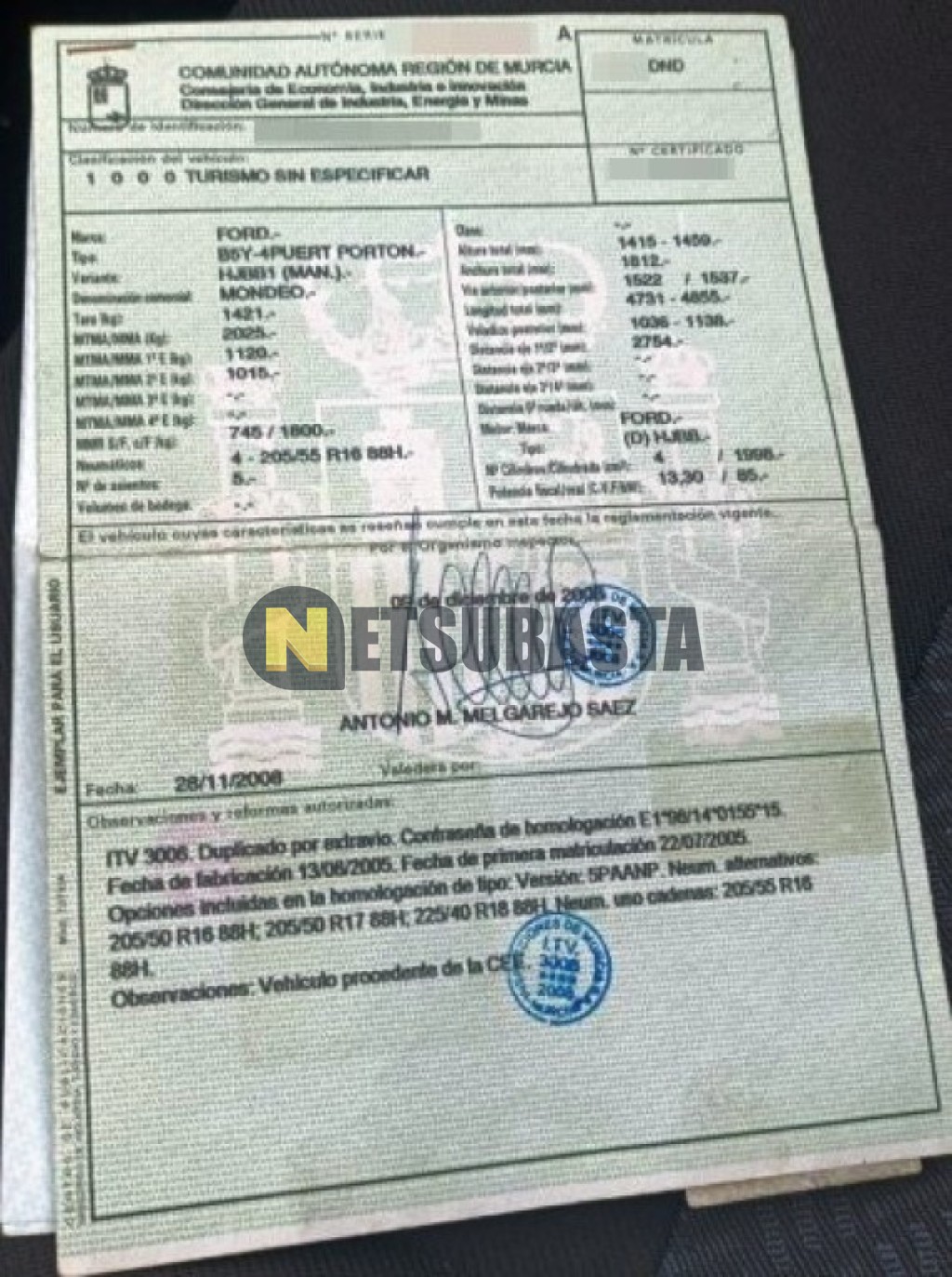 Recuerde que si lo desea, puede imprimir la ficha del vehículo Ford Mondeo 2.0 TDCi 2005 con todas sus características técnicas.