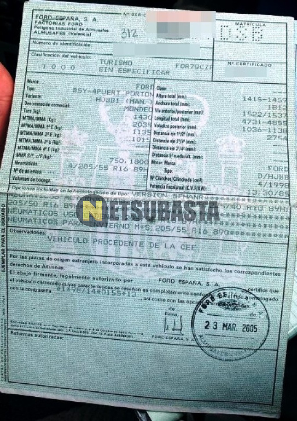 Subasta de Ford Mondeo 2.0 TDCi 2005 Averiados, Marca Ford, Modelo Mondeo 2.0 TDCi, Combustible Diésel, Kilometraje 350.000 KM, Fecha 1ª matriculación 10/2005, Matrícula ****DSB, Color Exterior , Color Interior , IVA REBU y Ubicación Murcia.