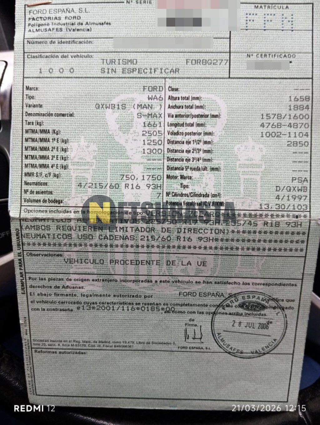 - Modelo:S-Max 2.0 TDCi