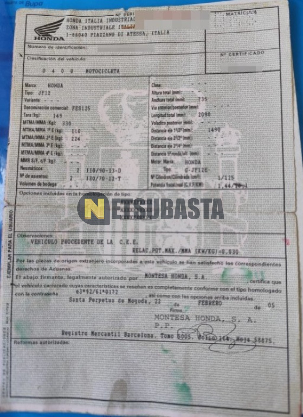 Recuerde que si lo desea, puede imprimir la ficha del vehículo Honda FES 125 Pantheon 2005 con todas sus características técnicas.