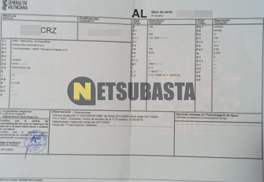 Subasta de Honda FES 150 Pantheon 2004 Averiados, Marca Honda, Modelo FES 150 Pantheon , Combustible Gasolina, Kilometraje 52.000 KM, Fecha 1ª matriculación 02/2004, Matrícula ****CRZ, Color Exterior , Color Interior , IVA REBU y Ubicación Alicante.