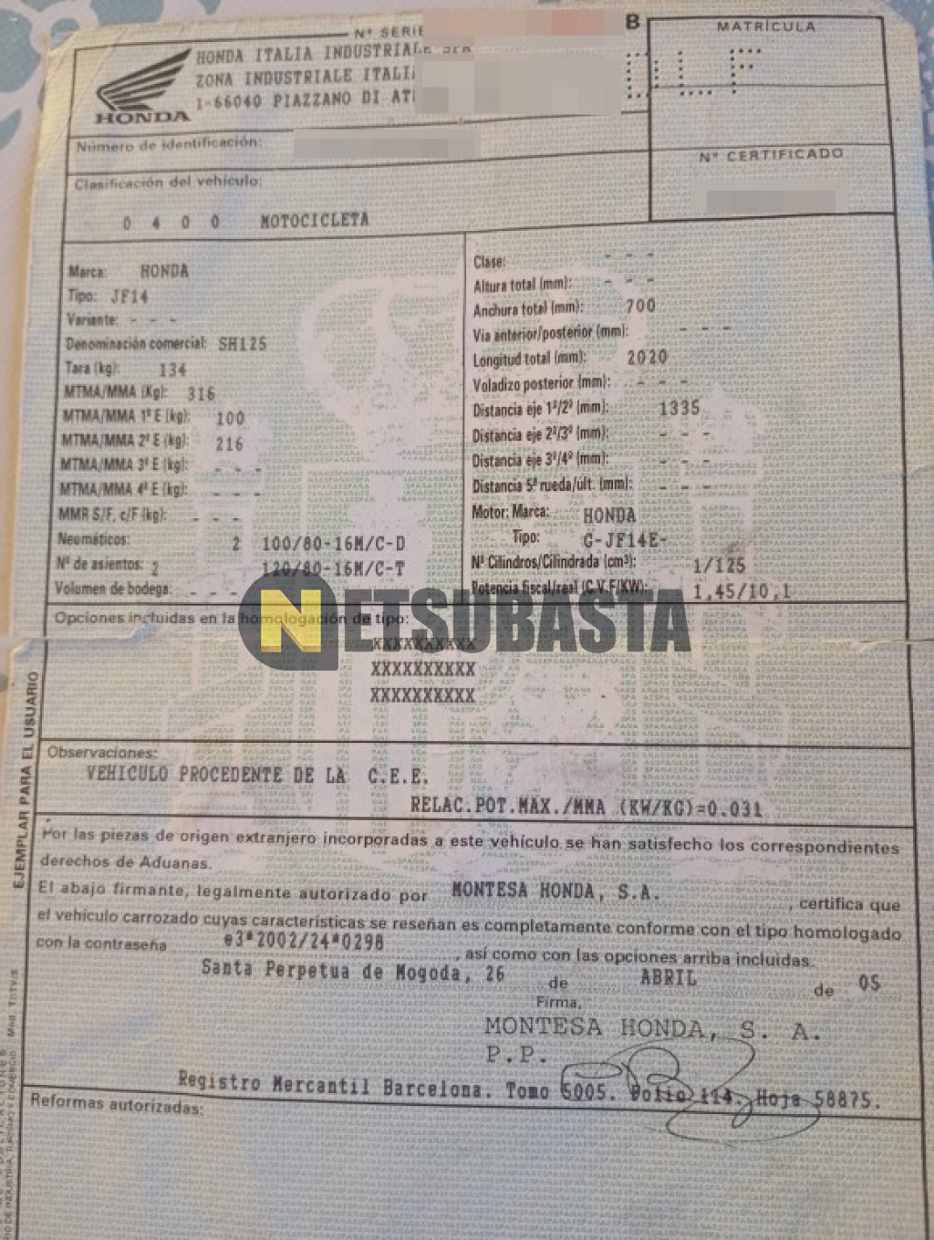 Subasta de Honda Scoopy SH125 2005 Averiados, Marca Honda, Modelo Scoopy SH125, Combustible Gasolina, Kilometraje 82.000 KM, Fecha 1ª matriculación 06/2005, Matrícula ****DLF, Color Exterior , Color Interior , IVA REBU y Ubicación Barcelona.