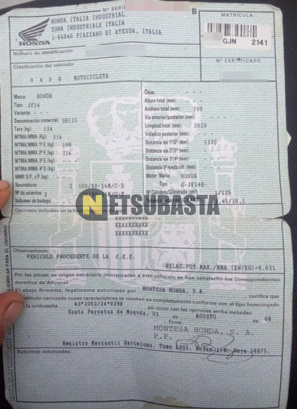 - Matrícula:****GJN