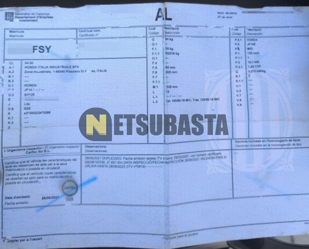 Subasta de Honda Scoopy SH125i 2007 Averiados, Marca Honda, Modelo Scoopy SH125i, Combustible Gasolina, Kilometraje 65.000 KM, Fecha 1ª matriculación 07/2007, Matrícula ****FSY, Color Exterior , Color Interior , IVA REBU y Ubicación Barcelona.