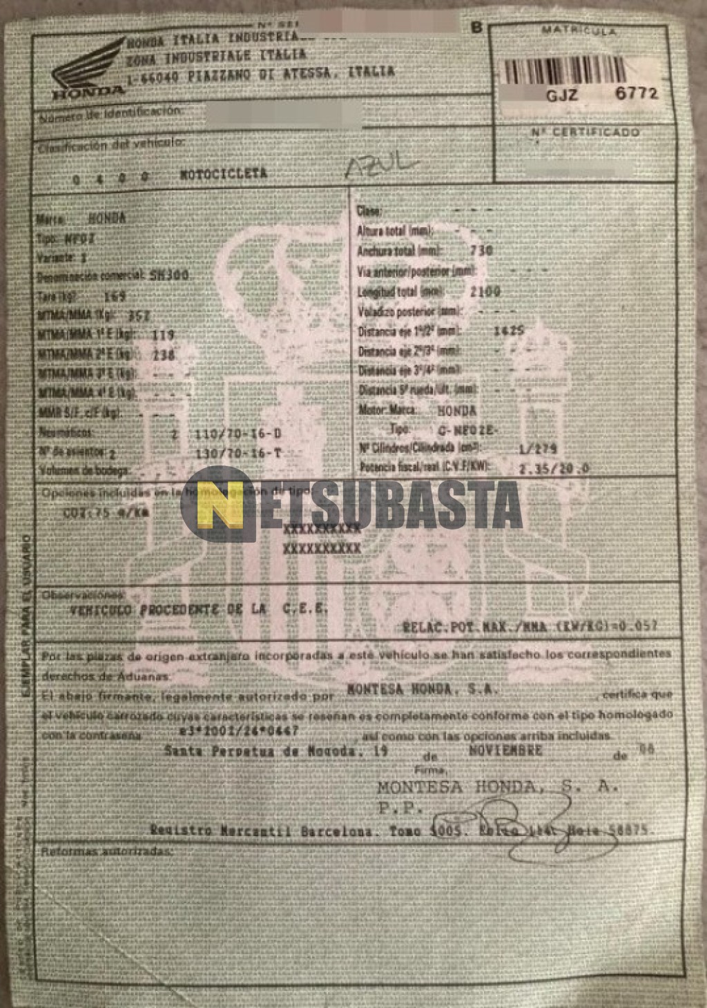 Subasta de Honda SH 300i 2008 Averiados, Marca Honda, Modelo SH 300i, Combustible Gasolina, Kilometraje 45.000 KM, Fecha 1ª matriculación 12/2008, Matrícula ****GJZ, Color Exterior , Color Interior , IVA REBU y Ubicación Barcelona.