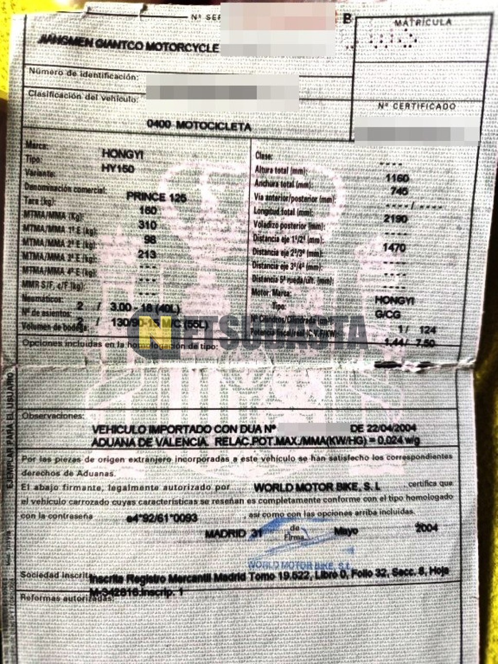 Subasta de Hongyi PRINCE 125 2004 Averiados, Marca Hongyi, Modelo PRINCE 125, Combustible Gasolina, Kilometraje 10.000 KM, Fecha 1ª matriculación 06/2004, Matrícula ****CWS, Color Exterior , Color Interior , IVA REBU y Ubicación Madrid.