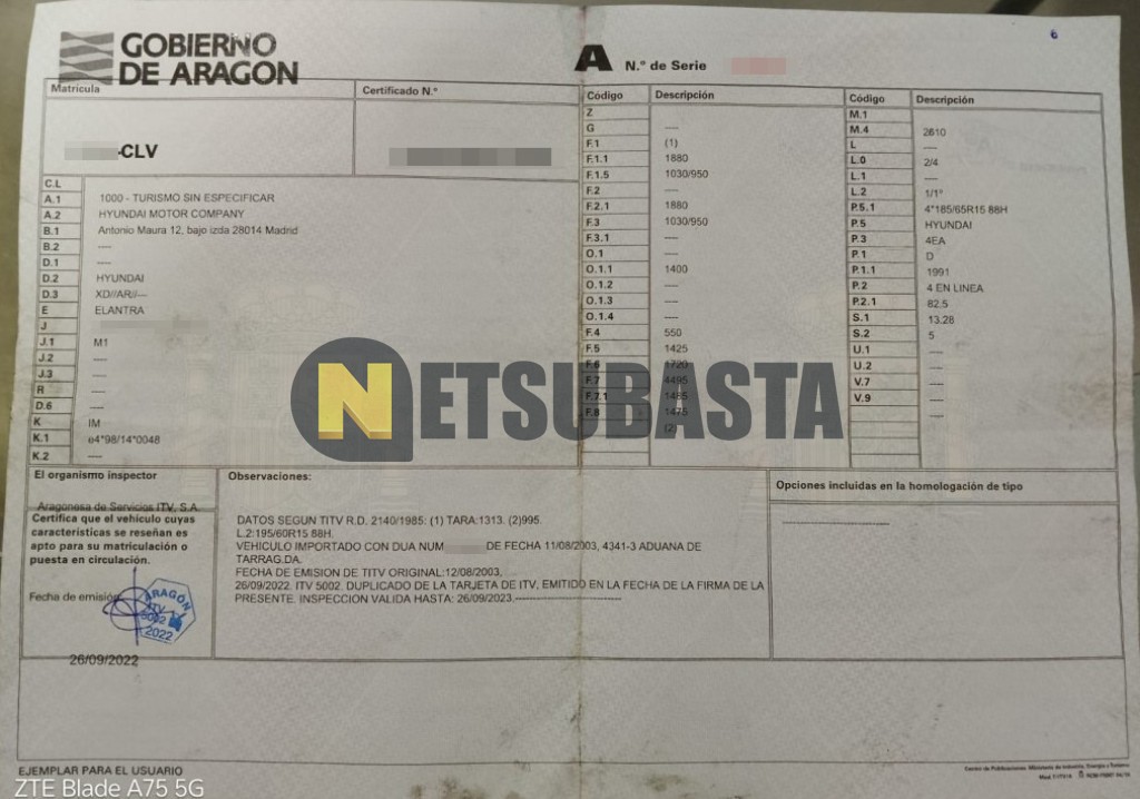 Subasta de Hyundai Elantra 2.0 CRDi 2003 Averiados, Marca Hyundai, Modelo Elantra 2.0 CRDi, Combustible Diésel, Kilometraje 280.000 KM, Fecha 1ª matriculación 08/2003, Matrícula ****CLV, Color Exterior , Color Interior , IVA REBU y Ubicación Zaragoza.