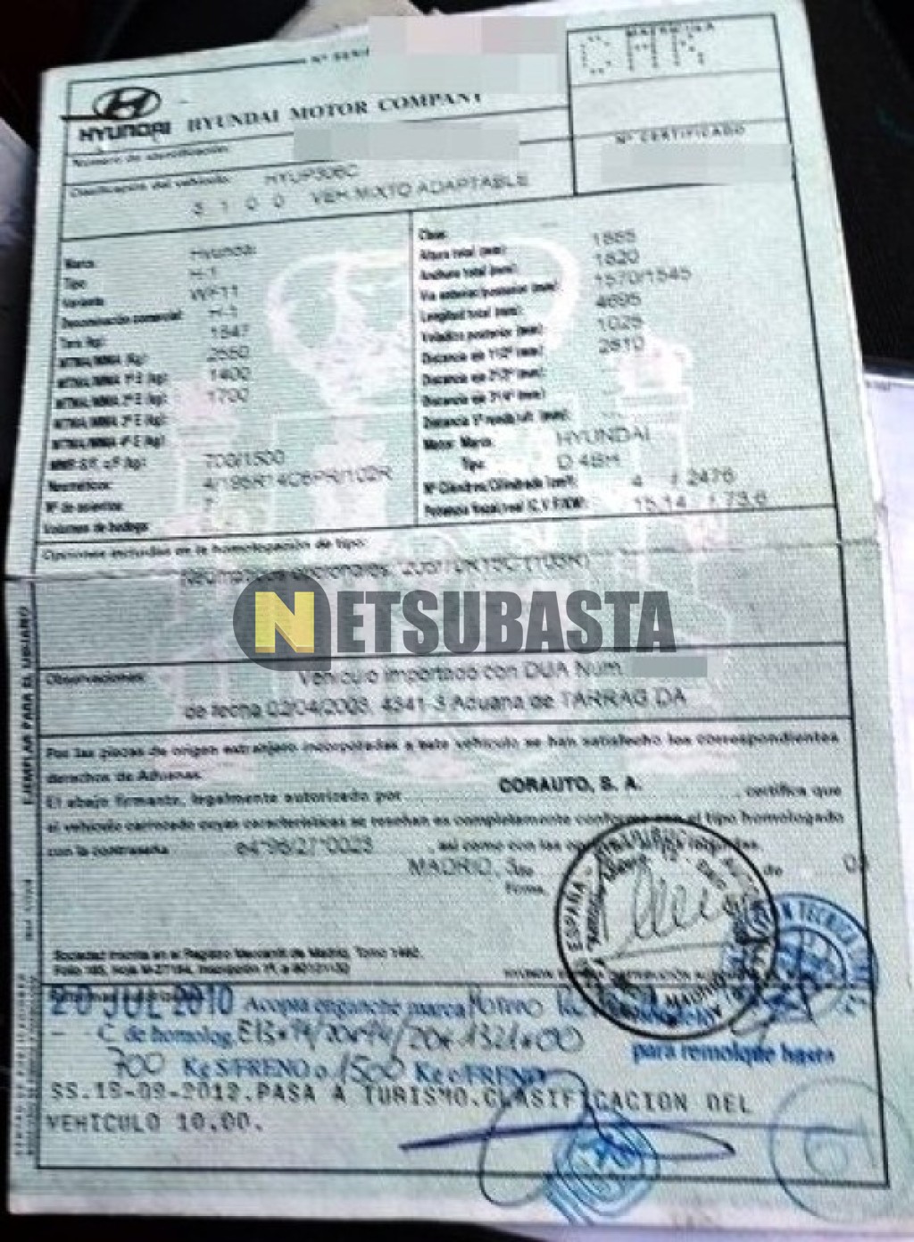 Subasta de Hyundai H-1 2.5 TCI 7 plazas 2003 Averiados, Marca Hyundai, Modelo H-1 2.5 TCI 7 plazas, Combustible Diésel, Kilometraje 190.000 KM, Fecha 1ª matriculación 05/2003, Matrícula ****CHK, Color Exterior , Color Interior , IVA REBU y Ubicación Vizcaya.