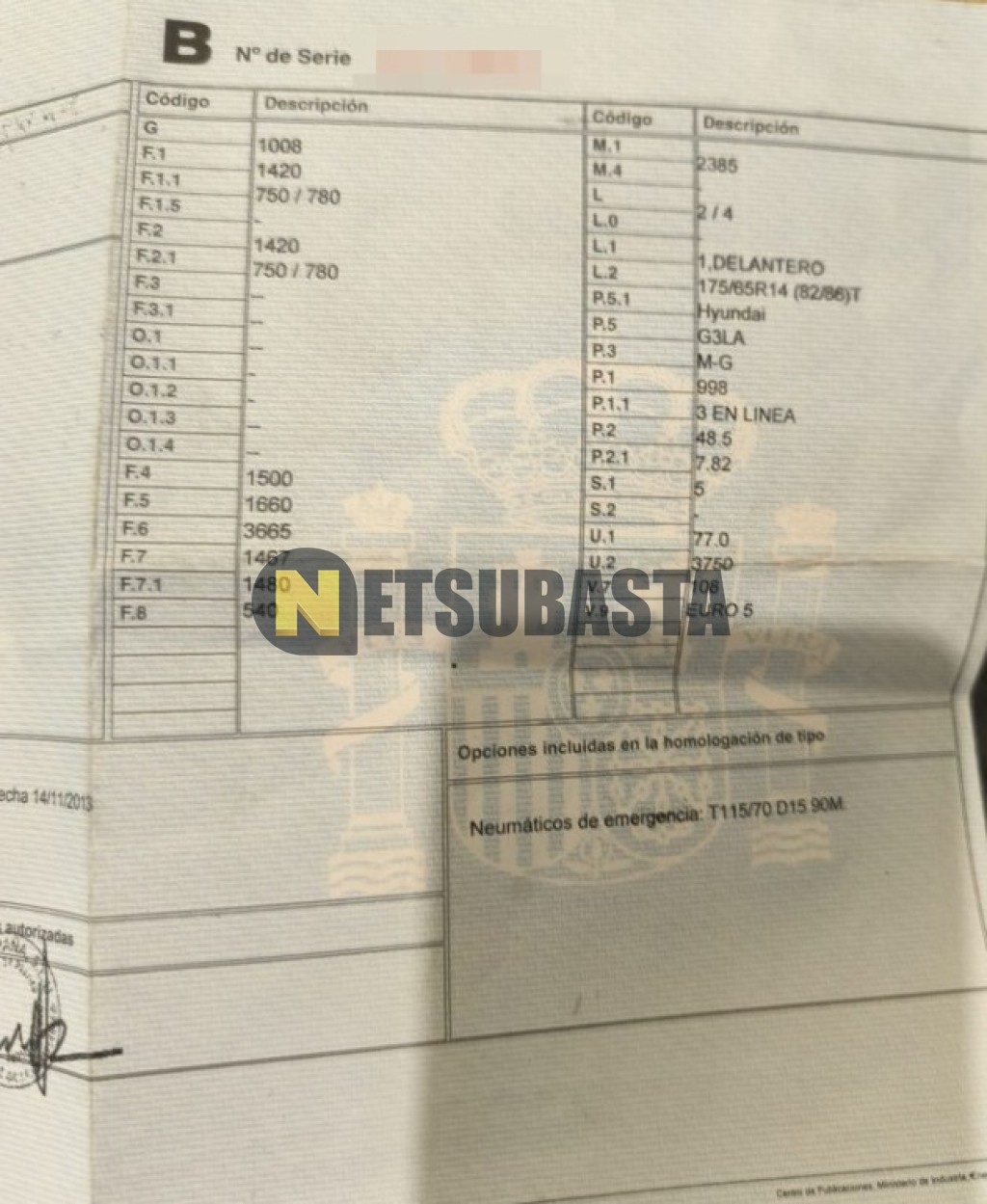 Subasta de Hyundai i10 1.0 MPi 2014 Averiados, Marca Hyundai, Modelo i10 1.0 MPi, Combustible Gasolina, Kilometraje 225.000 KM, Fecha 1ª matriculación 01/2014, Matrícula ****HVF, Color Exterior , Color Interior , IVA REBU y Ubicación Gerona.