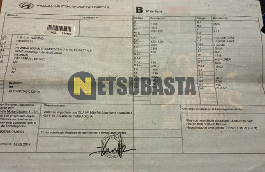Subasta de Hyundai i20 1.2 MPi 2014 Siniestrados, Marca Hyundai, Modelo i20 1.2 MPi, Combustible Gasolina, Kilometraje 195.000 KM, Fecha 1ª matriculación 10/2014, Matrícula ****HZL, Color Exterior , Color Interior , IVA REBU y Ubicación Madrid.