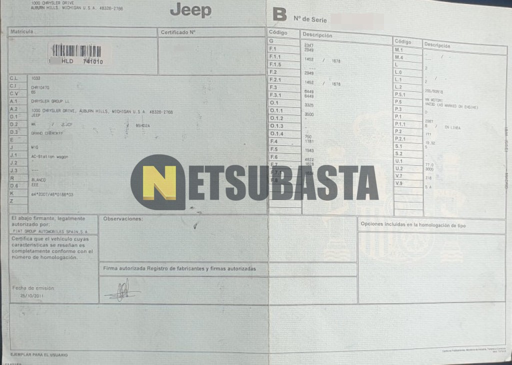 - Modelo:Grand Cherokee 3.0 V6 CRD