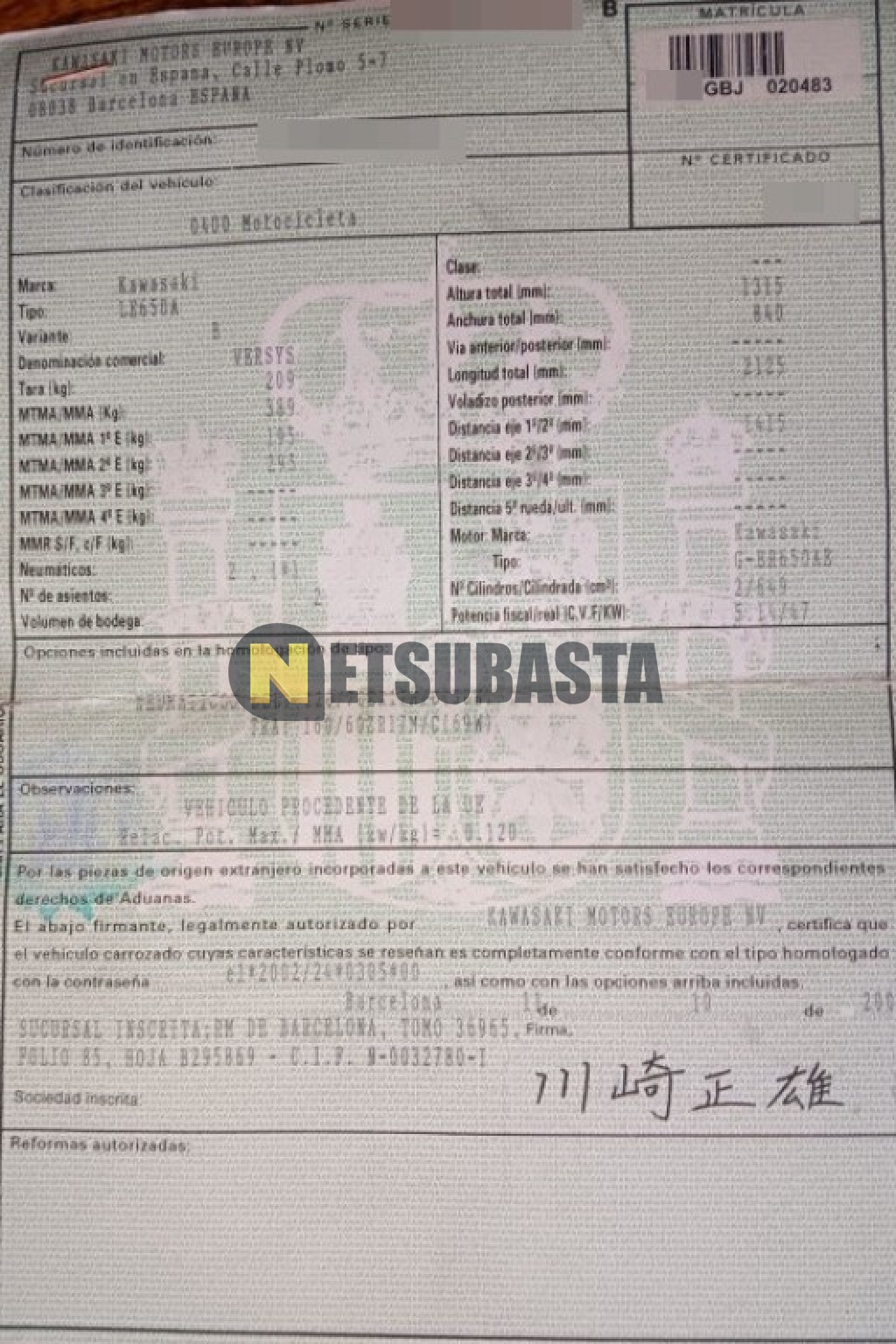 Recuerde que si lo desea, puede imprimir la ficha del vehículo Kawasaki Versys 650 2008 con todas sus características técnicas.