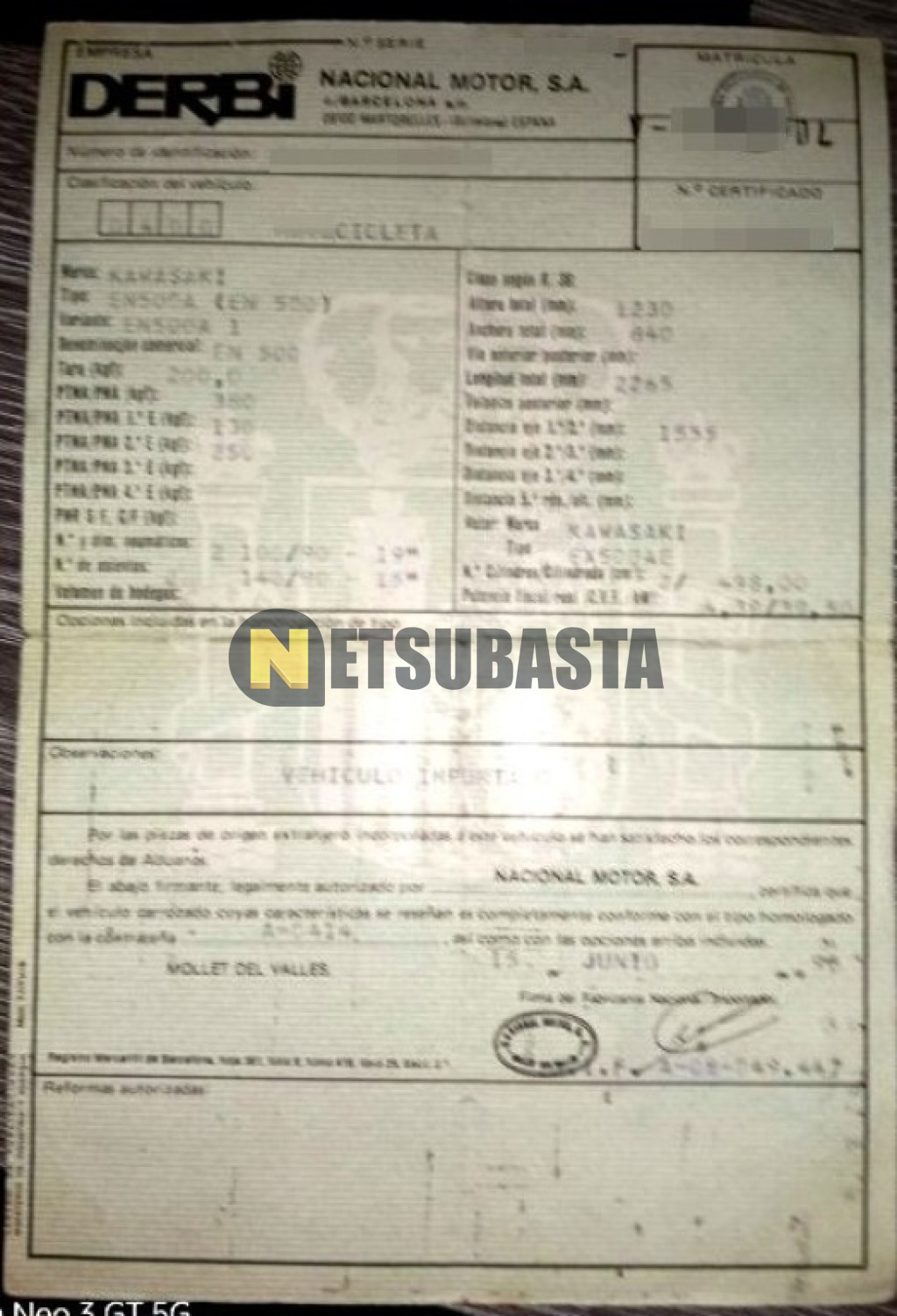 - Fecha primera matriculación:06/1990
