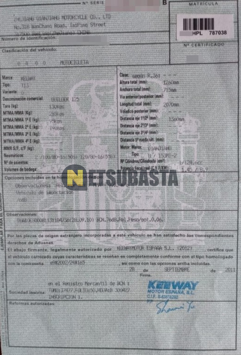 Subasta de Keeway Outlook 125 2013 Averiados, Marca Keeway, Modelo Outlook 125, Combustible Gasolina, Kilometraje 28.000 KM, Fecha 1ª matriculación 03/2013, Matrícula ****HPL, Color Exterior , Color Interior , IVA REBU y Ubicación Madrid.