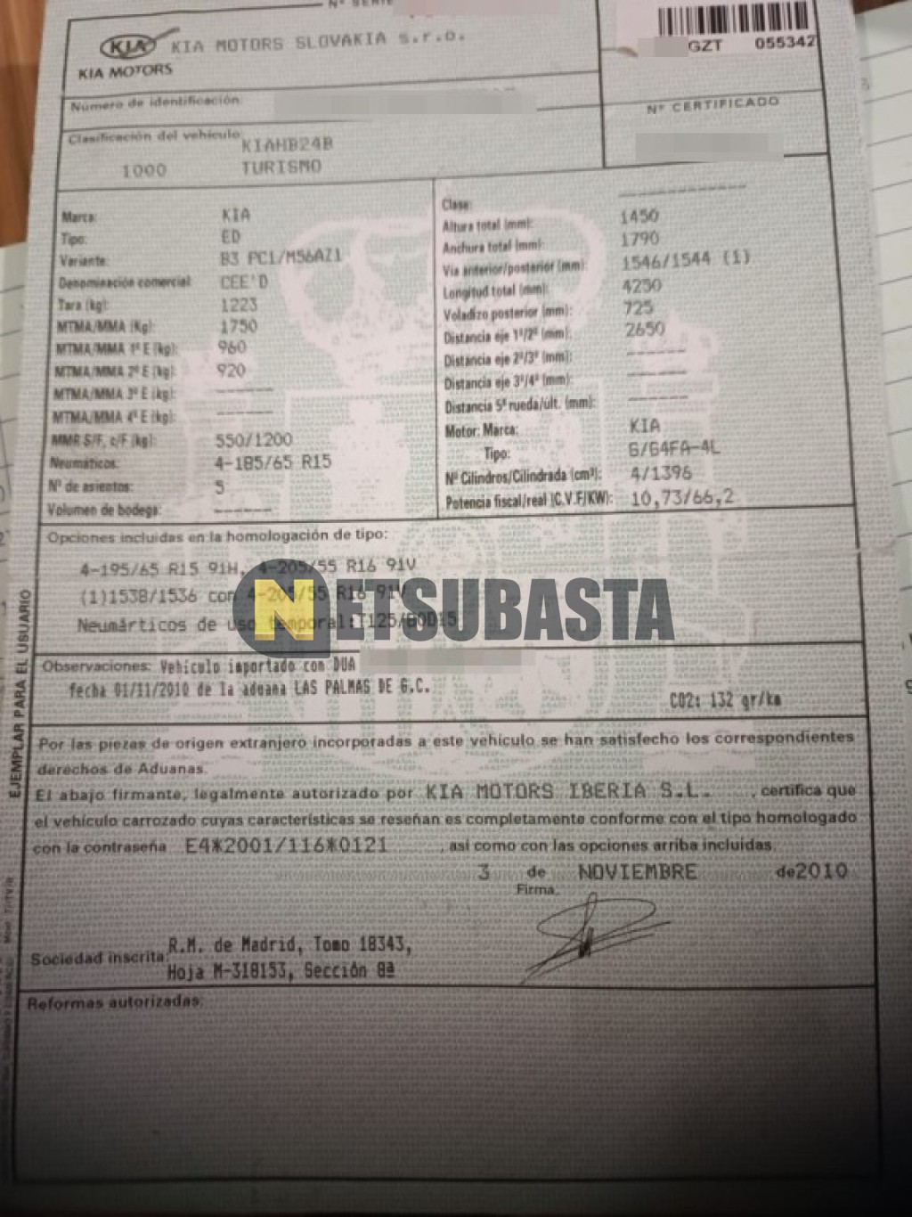 Subasta de Kia Ceed 1.4 CVVT 2010 Averiados, Marca Kia, Modelo Ceed 1.4 CVVT, Combustible Gasolina, Kilometraje 175.000 KM, Fecha 1ª matriculación 11/2010, Matrícula ****GZT, Color Exterior , Color Interior , IVA REBU y Ubicación Santa Cruz de Tenerife.