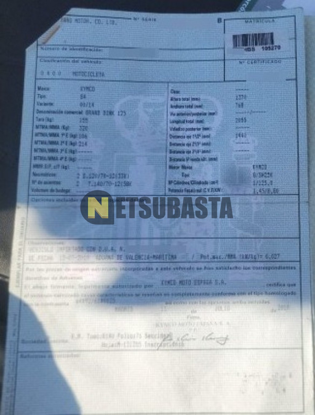 Subasta de Kymco Grand Dink 125 2011 Averiados, Marca Kymco, Modelo Grand Dink 125, Combustible Gasolina, Kilometraje 38.000 KM, Fecha 1ª matriculación 02/2011, Matrícula ****HBS, Color Exterior , Color Interior , IVA REBU y Ubicación Madrid.