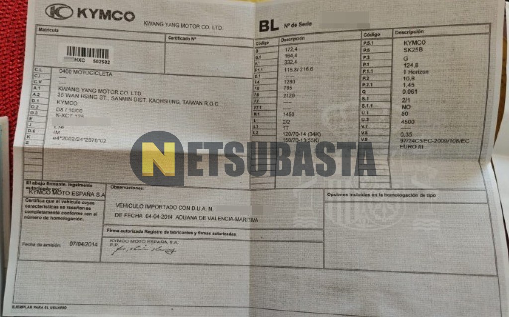 Subasta de Kymco K-XCT 125i 2014 Averiados, Marca Kymco, Modelo K-XCT 125i, Combustible Gasolina, Kilometraje 80.000 KM, Fecha 1ª matriculación 05/2014, Matrícula ****HXC, Color Exterior , Color Interior , IVA REBU y Ubicación Madrid.