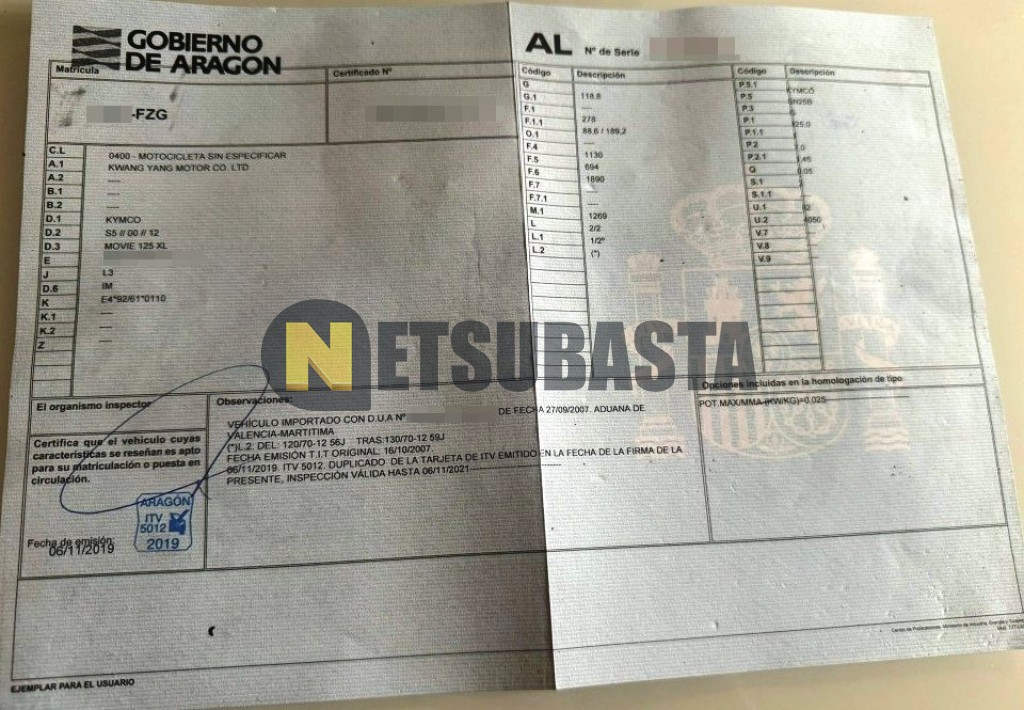 Subasta de Kymco Movie 125 XL 2008 Averiados, Marca Kymco, Modelo Movie 125 XL, Combustible Gasolina, Kilometraje 60.000 KM, Fecha 1ª matriculación 01/2008, Matrícula ****FZG, Color Exterior , Color Interior , IVA REBU y Ubicación Zaragoza.