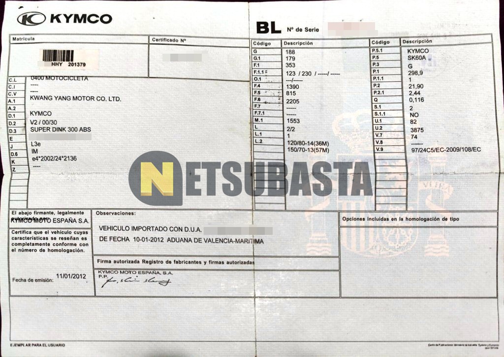 Subasta de Kymco Super Dink 300I ABS 2012 Averiados, Marca Kymco, Modelo Super Dink 300I ABS, Combustible Gasolina, Kilometraje 84.000 KM, Fecha 1ª matriculación 01/2012, Matrícula ****HHY, Color Exterior , Color Interior , IVA REBU y Ubicación Madrid.
